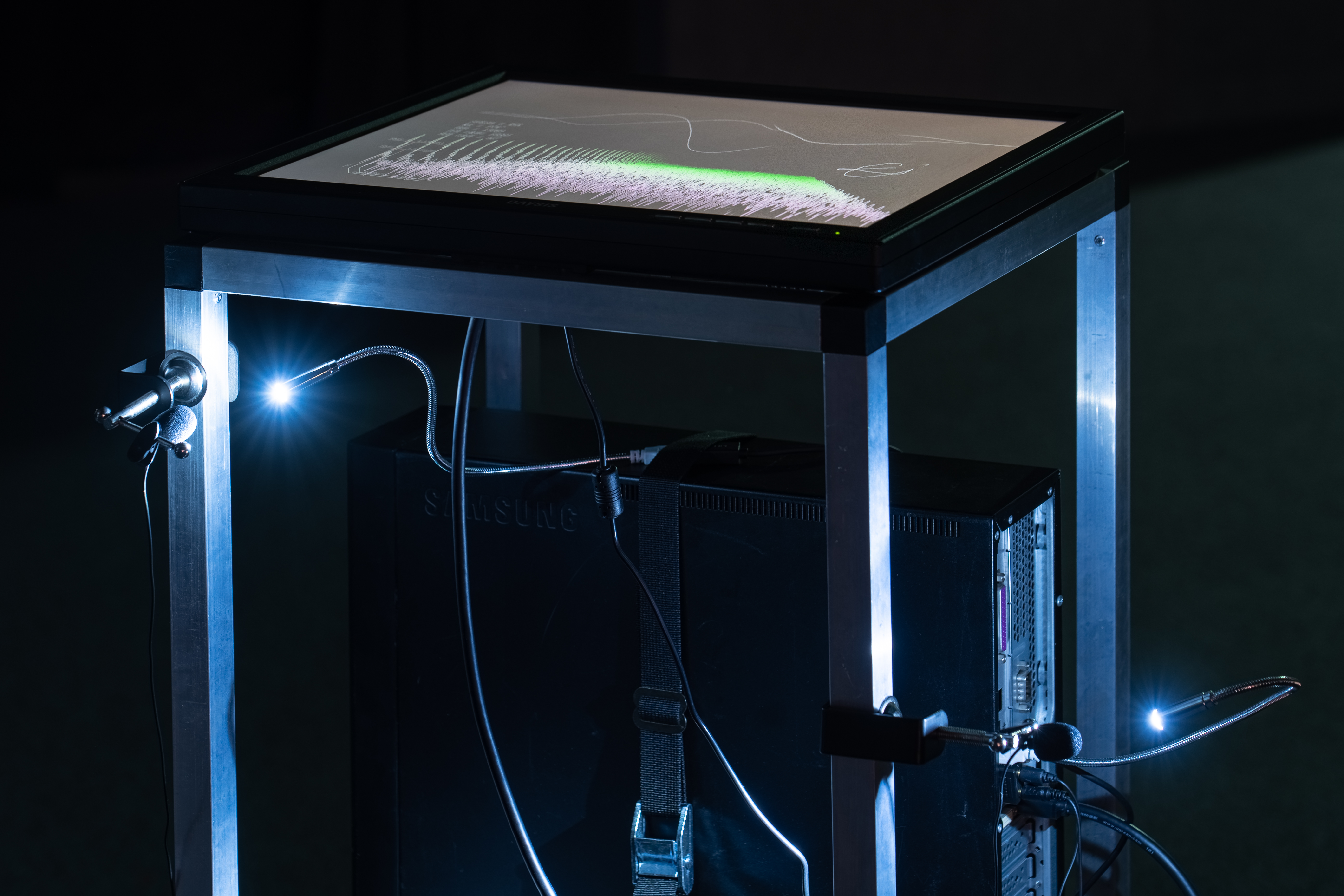 Monitor, Desktop Computer, Aluminum Pipe, Microphones, LED Light
