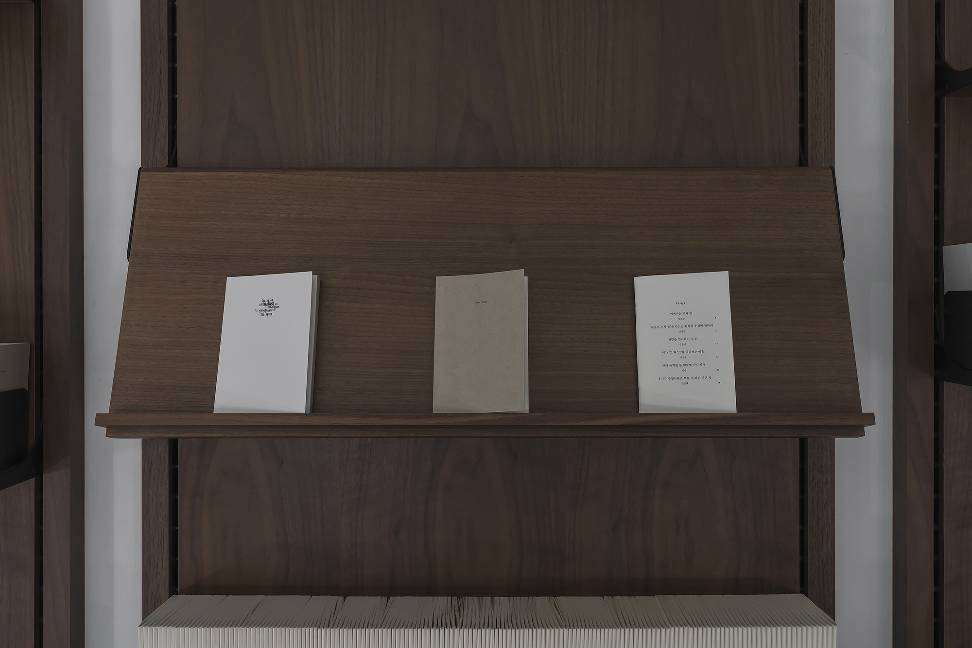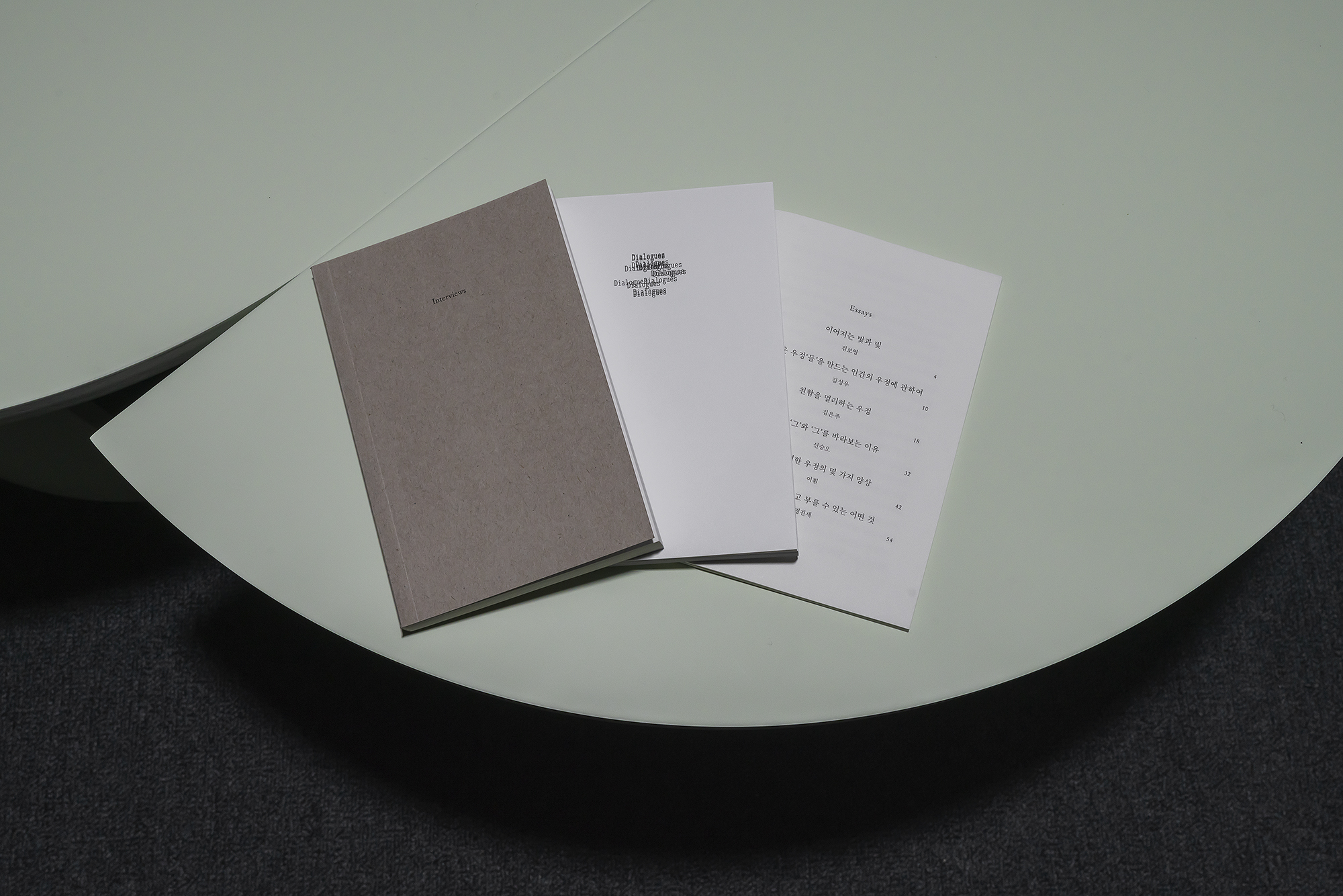 마지막으로, 책장과 테이블 위에는 프로젝트가 지나온 시간과 목소리가 축적된 세 권의 책이 놓여 있다. 『Interviews』는 식물과 동물, 비인간 존재의 관계가 이어지는 여정을 한 권에 엮어, 우정의 언어를 공유한다. 진폭과 주파수의 기록으로 시작하는 『Dialogues』는 ‘뤼시스’의 발화를 경유해, 달팽이와 책을 읽는 가정을 허구와 현실의 경계 위에서 전개한다. 전시장 안, 책과 책상, 식물과 관객, 빛과 어둠은 그 조건을 구성하는 요소로 개입하며, 서로의 시간과 공간을 기묘하게 접속시킨다. 여섯 명의 필자가 참여한 『Essays』는 중력처럼 작용하는 기억의 감각, 답장을 기다리던 시간, 거리감으로 드러나는 관계의 모습, 오래 함께한 사물과의 연결에서 우정의 모습을 드러낸다. 《새로운 막, 뤼시스》는 우정이 성립하는 조건을 다시 질문의 자리로 돌려놓고, 서로 마주하는 시간을 전시의 형식으로 들여와 지속시킨다. 기획자·작가의 대화, 인터뷰, 둥글게 둘러앉은 테이블, 끝나지 않는 사운드의 흐름에서 전시는 결론에 이르지 않는 질문의 상태를 유지한다. 서로의 언어가 중심에 닿지 못하더라도 그 가장자리에서 우정의 의미는 계속해서 갱신된다.