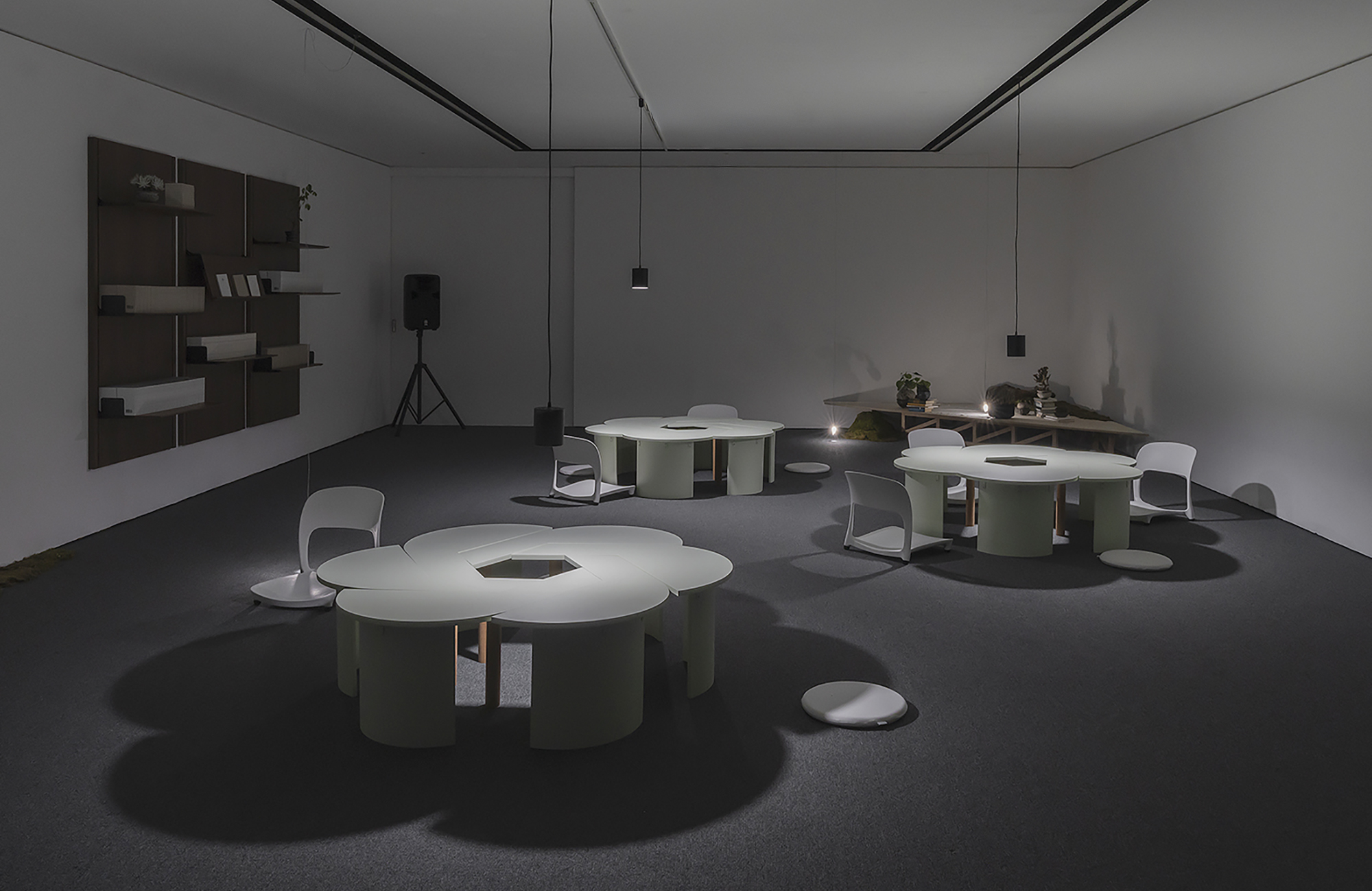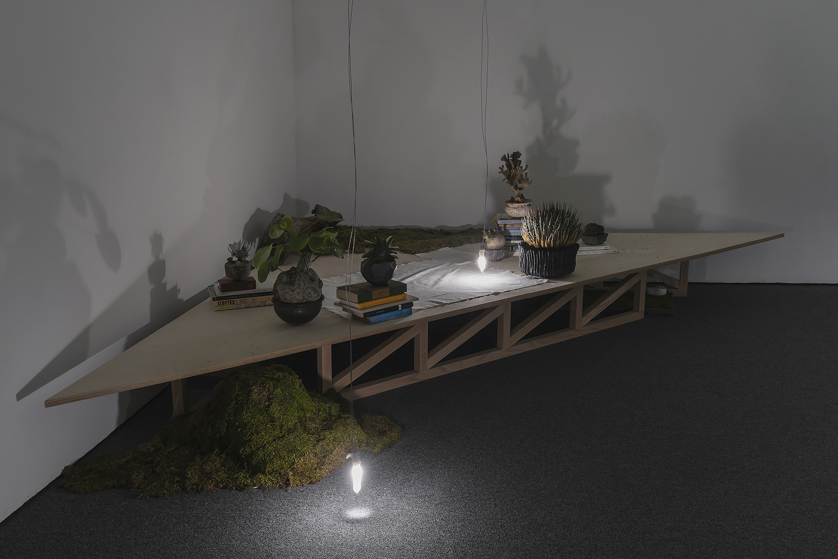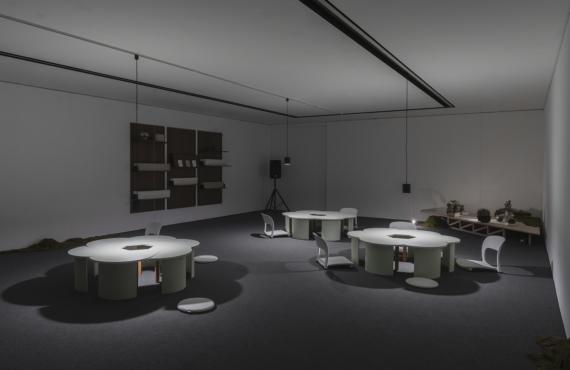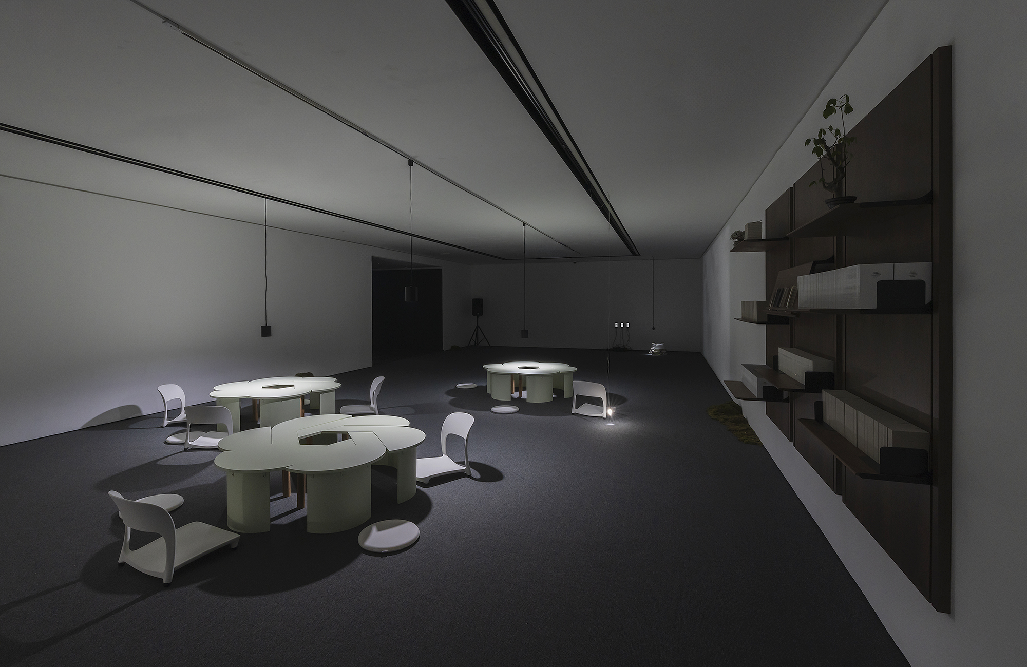 Finally, three books in which the time and voices accumulated through the project are gathered are placed on the shelves and tables. Interviews brings together a series of encounters with plants, animals, and non-human beings, sharing a language of friendship across these relations. Beginning with records of amplitude and frequency, Dialogues passes through the utterances of Lysis to develop the speculative premise of reading with a snail, unfolding at the boundary between fiction and reality. Within the exhibition space, books and tables, plants and visitors, light and darkness enter as elements that condition these relations, drawing different times and spaces into contact. Essays, to which six writers have contributed, approaches friendship through the sensation of memory that exerts a gravitational pull, the time spent waiting for a reply, relations revealed through distance, and connections formed with objects long kept close. New Act: Lysis places the conditions of friendship back into a space of questioning, sustaining moments of encounter as the form of the exhibition itself. Even when individual languages fail to meet at a center, the meaning of friendship continues to be renewed along their edges.